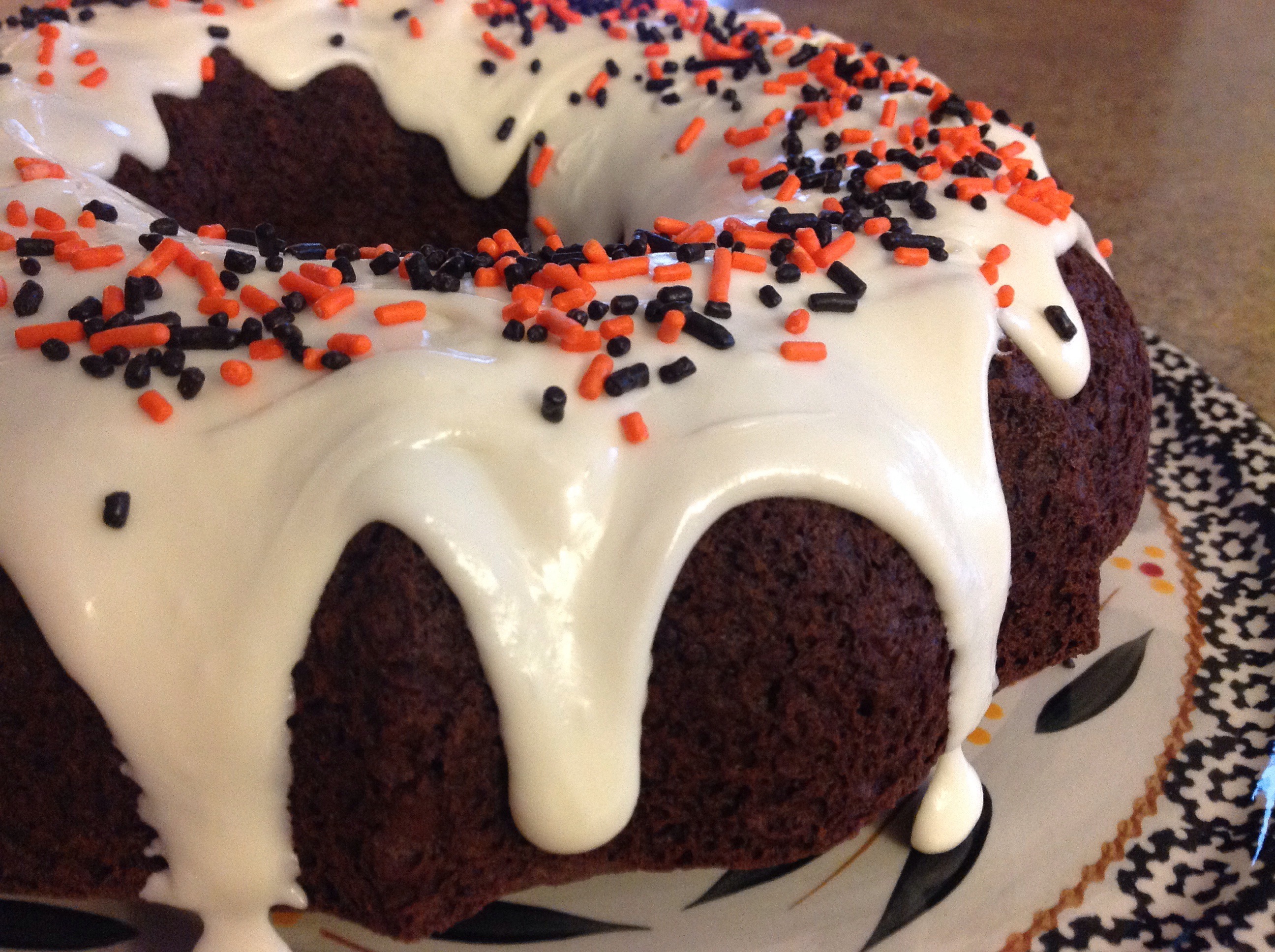 Here’s a moist and flavorful recipe that is sure to put a smile on your face for the holiday! One of the main ingredients is mayonnaise. I have made this cake for years and it’s one of my most requested recipes. You can find the full recipe here. For this cake I used cream cheese frosting and holiday sprinkles but you can use anything that you like. Enjoy!