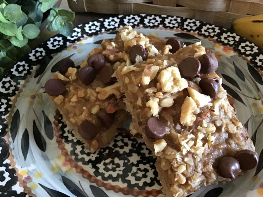This recipe comes from the page pictured below. The only change that I made was to add a handful of chopped walnuts to the already simplistic ingredients. I am always looking for recipes that will help to use up the stash of overly ripe bananas that I have tucked in my freezer. This one fit the bill. Lots of flavor with very little fuss…