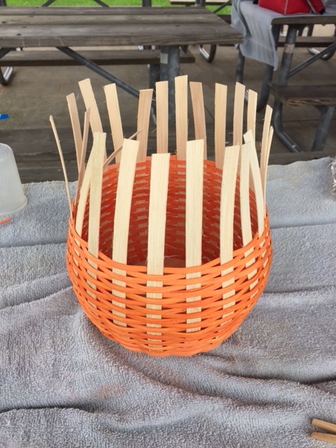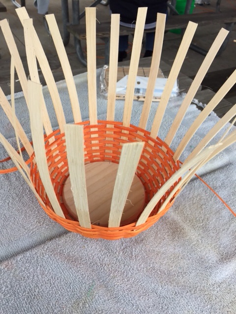 Bend down, every other spoke. Clip; mark remaining spokes to bend under and secure under weave.
