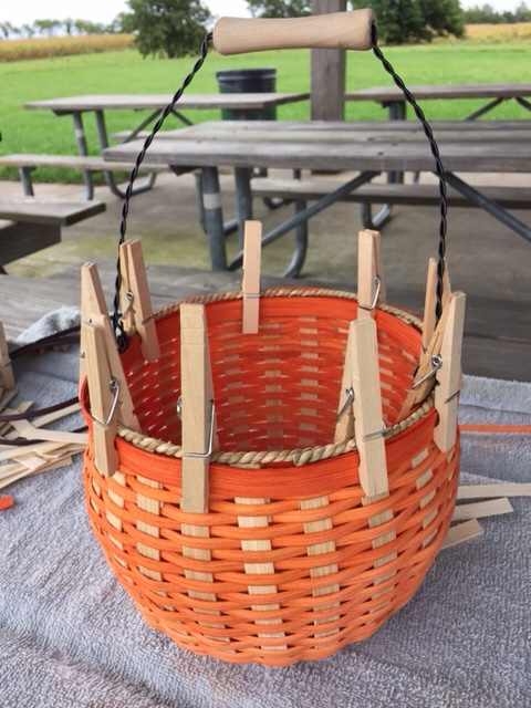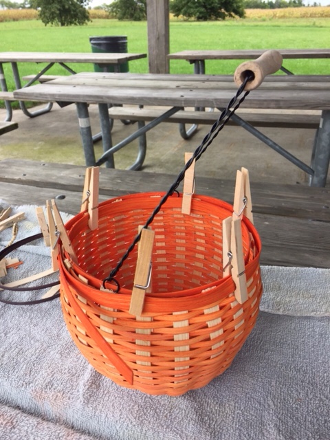 Secure wire handle before finishing rim of the basket.