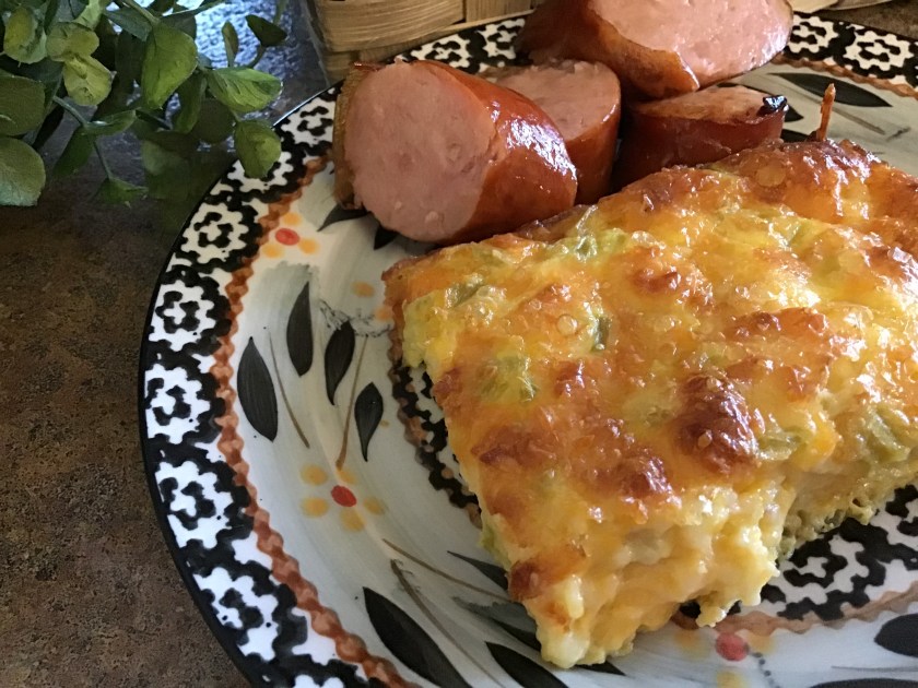 We had an office brunch this past week. Everyone was asked to contribute a dish. My secretary baked this simple, yet delicious casserole made with eggs, cheese and chilis. Everyone raved over the wonderful flavors so I immediately requested the recipe.