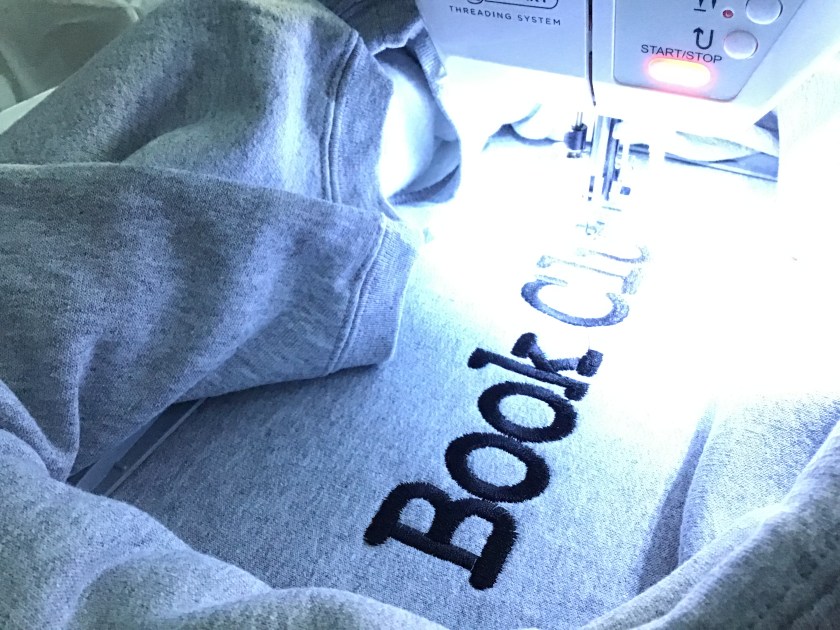 My daughter had seen one of the famous Fixer Upper hosts wearing a sweatshirt with the words, “Book Club” screen printed onto the front of the garment. Being an avid reader, she immediately declared her desire to have a shirt like this for Christmas. After looking up the cost for said sweatshirt, I decided to make one of my own using my trusty embroidery machine. Carefully reviewing the garment, I quickly found a few heather colored sweatshirts at the discount store and identified a font that would work the the “Book Club” design. I didn’t care for the font used in the original design so I settled on a text style that looked just like one found when reading a book; a contemporary spin on Times New Roman. Here are the steps I used to embroider font or text onto the front of a basic medium-weight sweatshirt.