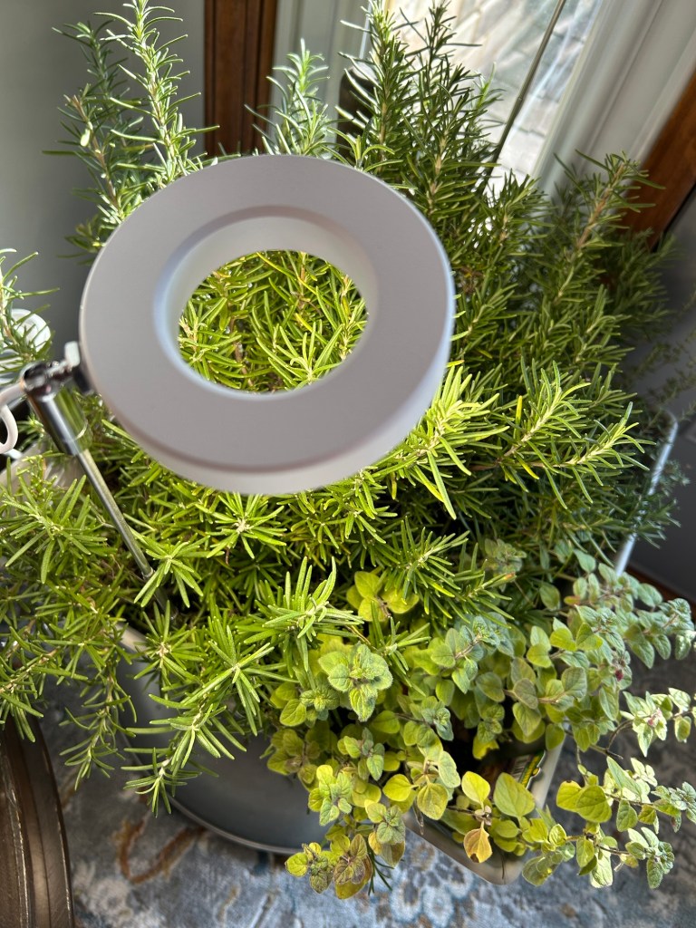 Nothing beats the bright, bold flavor of fresh herbs. When the Midwest winter rolls into our Indiana town, I’m quick to bring my herbs indoors to extend their growing season. My trick is to use the halo-shaped growing lights to keep the plants healthy. These lights attach to my pots or are staked into the soil to provide just enough light to support growth and longevity. The result is phenomenal! On the RARE occasion we have unseasonable temps (40’s-50’s), I take the opportunity to pop my plants outdoors for a few hours in the afternoon when the sun is brightest. Otherwise, the plants are tucked inside my warm home with artificial lighting to help them stay strong. Once the fear of frost is beyond us, I pop the plants back outdoors for the Midwest spring and summer growing season.