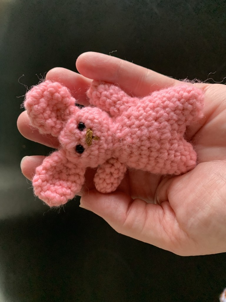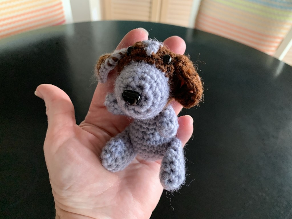 Visiting the local Dollar Tree, I found a few Amigurumi kits that I would bring on my Disney Vacation Club trip. I usually take a day or two to just relax and stay away from the hustle and bustle of the parks and shops. These kits are $1.25, but remember, you get what you pay for… The pattern is VERY difficult to decider and I ran out of yarn for one of the petite pets (dog) and had to improvise with yarn I had left over for another part of the project. You’ll notice I have used gray yarn on the left dog ear because I ran out of brown.