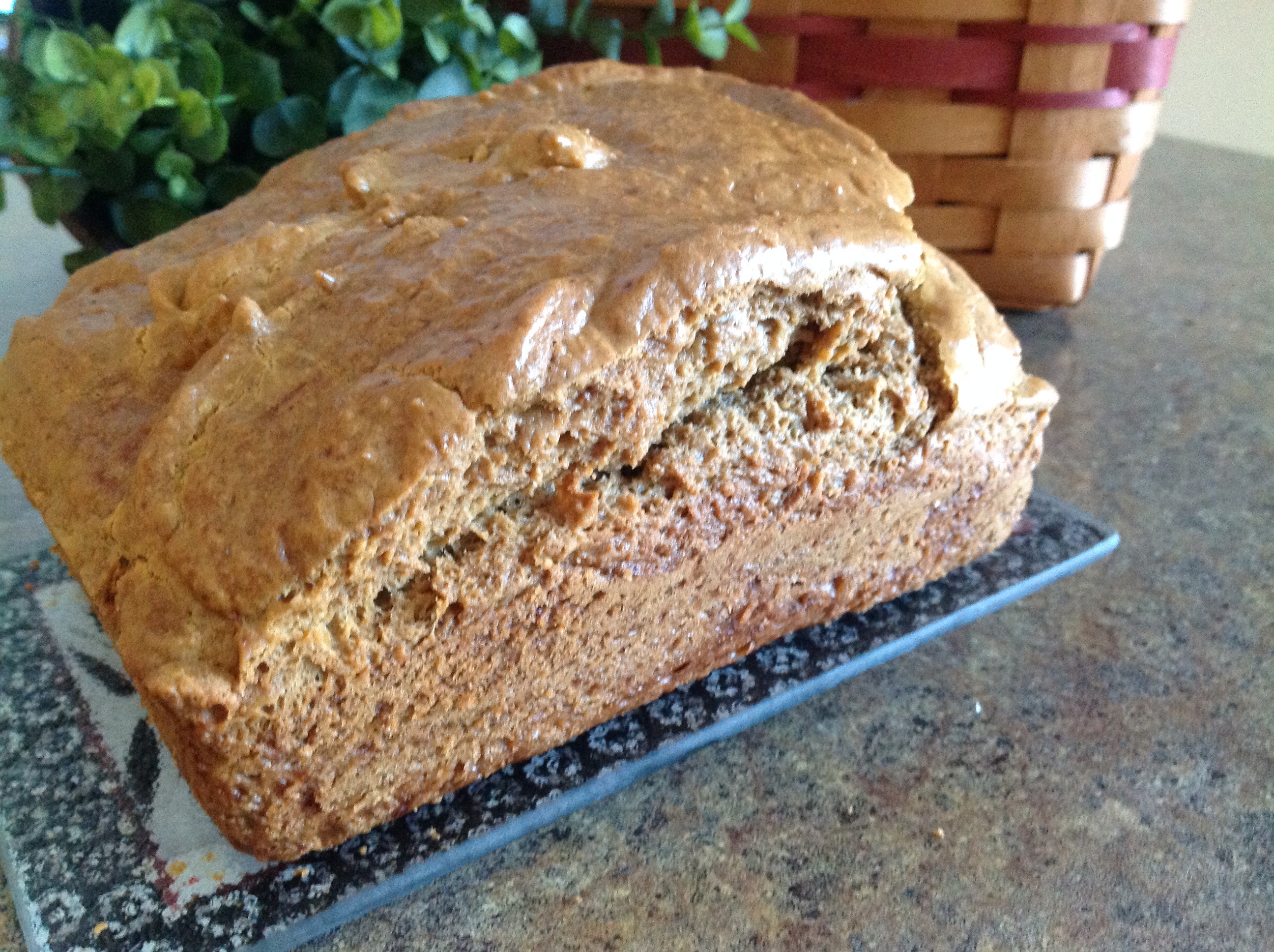 Preheat oven to 350 degrees. Grease a 1 quart mini loaf pan or 2-3X5″ loaf pans. In a medium bowl, combine beaten eggs and peanut butter. With a spatula, mix until smooth. Add vinegar, baking soda and sweetener. Hand whisk until smooth and creamy. Pour batter into prepared loaf pan(s). Bake for 30-35 minutes until bread is fully cooked and toothpick inserted in the center comes out clean. Cool completely before slicing into thin slices with a sharp knife.