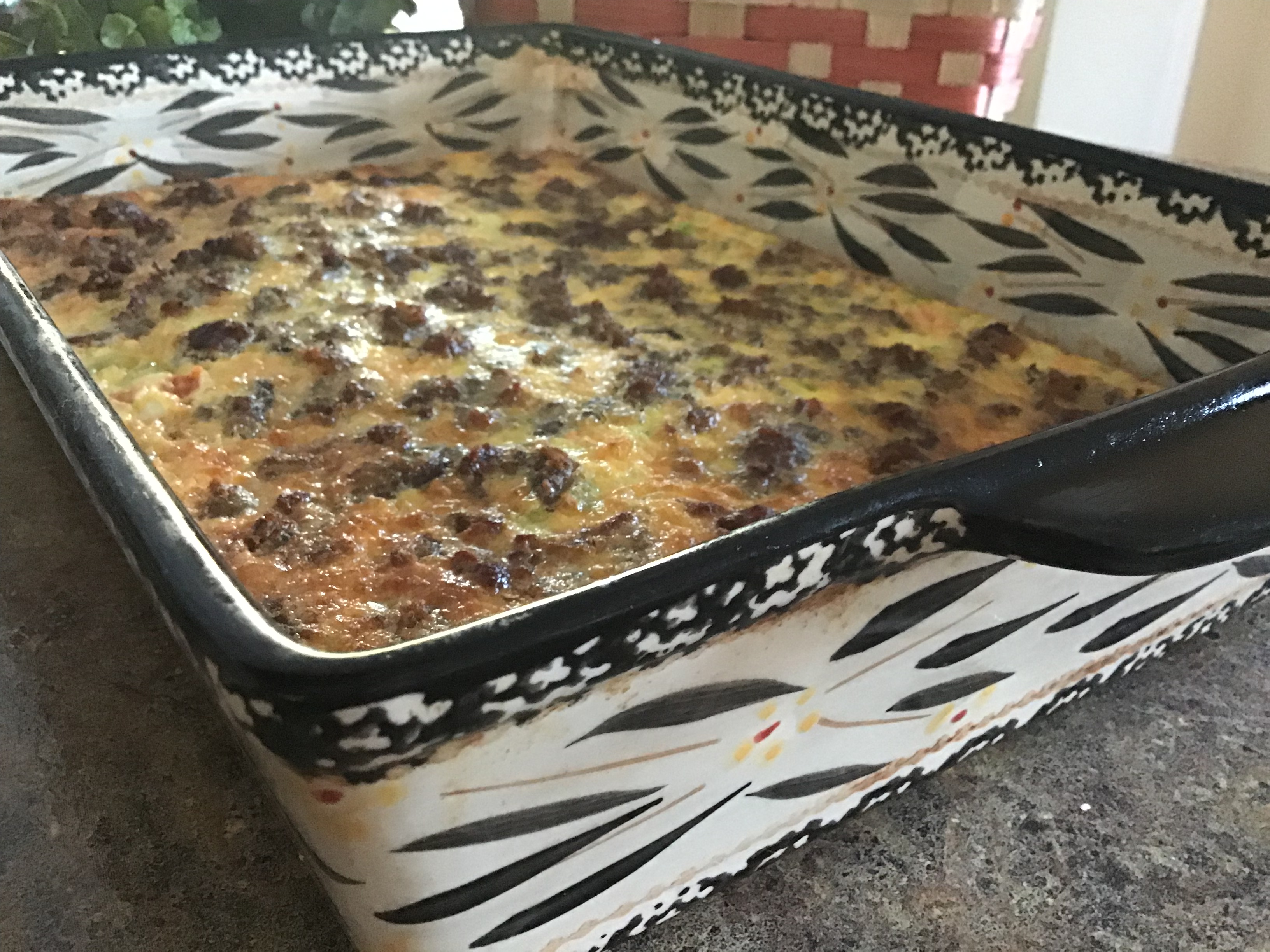 I really try to keep my carb intake to a minimum. Here’s a great recipe that fits the bill when I want something flavorful, fluffy and delicious to start my day. After this casserole has slightly cooled, I slice the dish into 3” squares so that I can quickly pop a portion into my lunch bag or to have as a mid-morning snack. My family can slip a square or two between two slices of wheat toast for a tasty little sandwich.